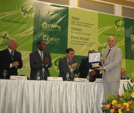 Dr. Ismail Serageldin, directeur de la Bibliotheca Alexandrina et de la représentation régionale du TWAS a reçu à cette occasion la médaille de la dixième conférence pour sa participation active à des projets de développement durable.